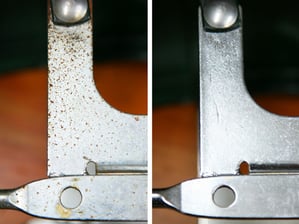 ★ラストリムーバーを塗ったまま乾かすと灰白色の約3ミクロンの防錆皮膜が形成されます。(灰白色が嫌な場合、液が乾く前に布でこすり、取り除く)